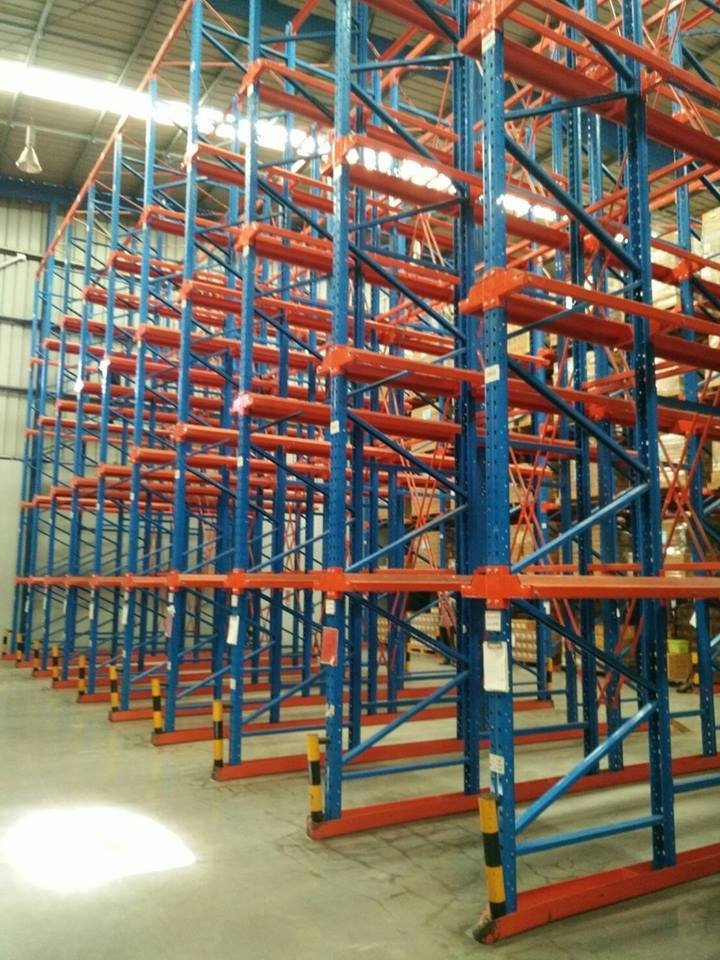 Drive-In Racking SystemDrive-In Racking System is designed for storing the product with high volume. The same product is stored in the pallet sorting order: the first transfer product is at the front for the convenience and cost savings.