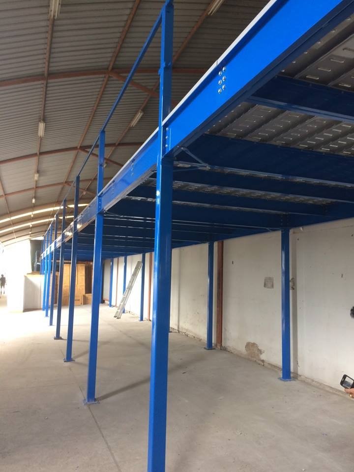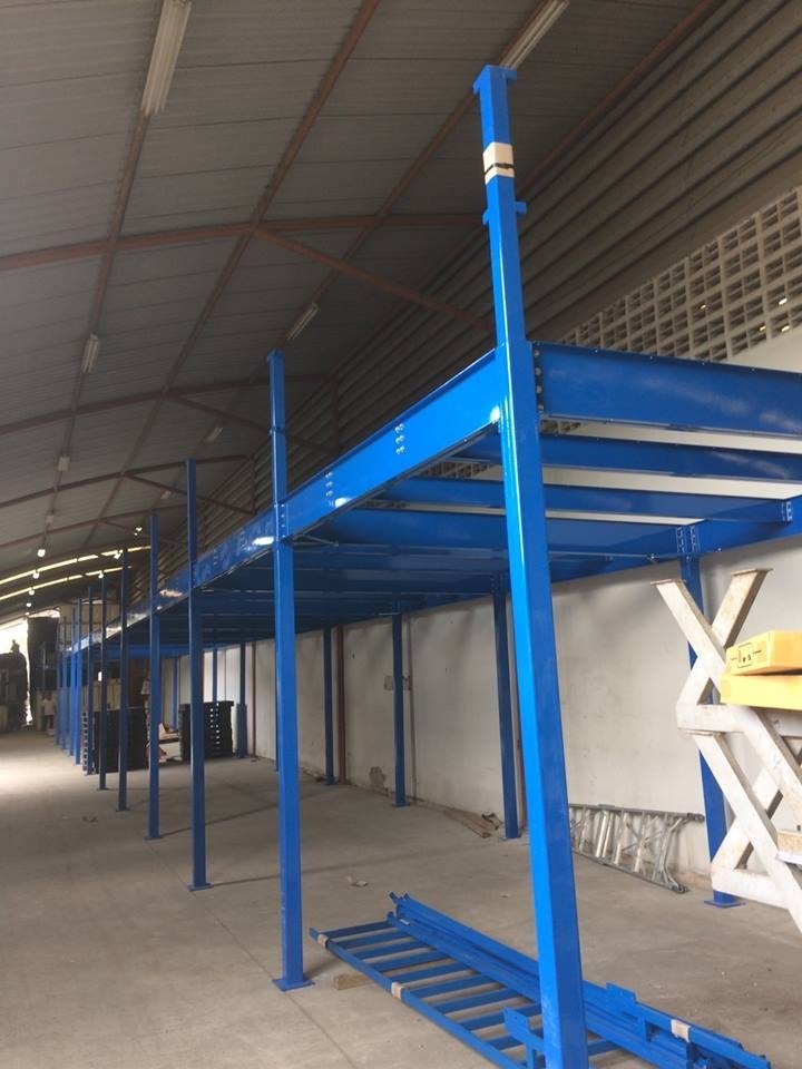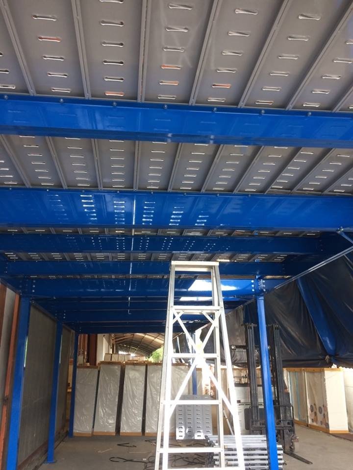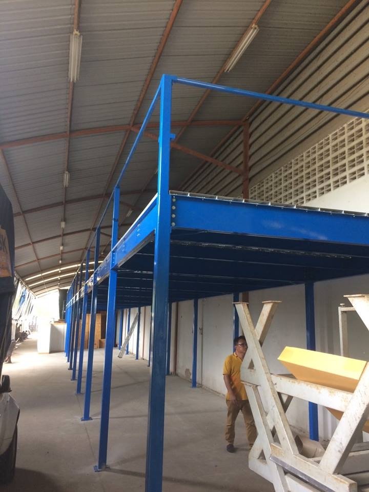 Mezzanine System is the solid intermediate floor structure supporting high weight. It facilitates the simple modification and safe demolition. Mezzanine is the appropriate system for the industrial factory with the storage problem to provide more area for storing raw material or products for transport. There is stairs and railing where the top area can be wooden or steel floor as designed.